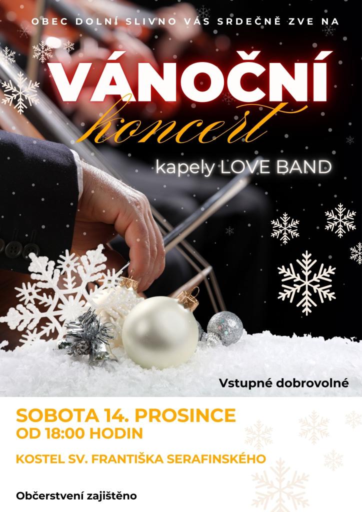 V sobotu 14.12. od 18:00 hodin Vás zveme do kostela sv. Františka Serafinského na adventní koncert pod vedením kapely LOVE Band. Zazní krásné české klasické koledy a vánoční hity. Zahřát se budete moci svařeným vínem či nealko punčem. Vstupné dobrovolné. Těšíme se na Vás!