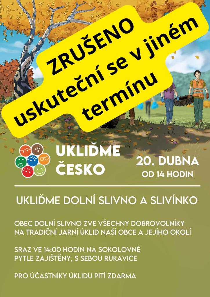 Z důvodu nepříznivého počasí a špatné předpovědi na zítřejší den jsme nuceni akci Ukliďme Dolní Slivno a Slivínko ZRUŠIT. Až se počasí umoudří, budete o novém termínu informováni.