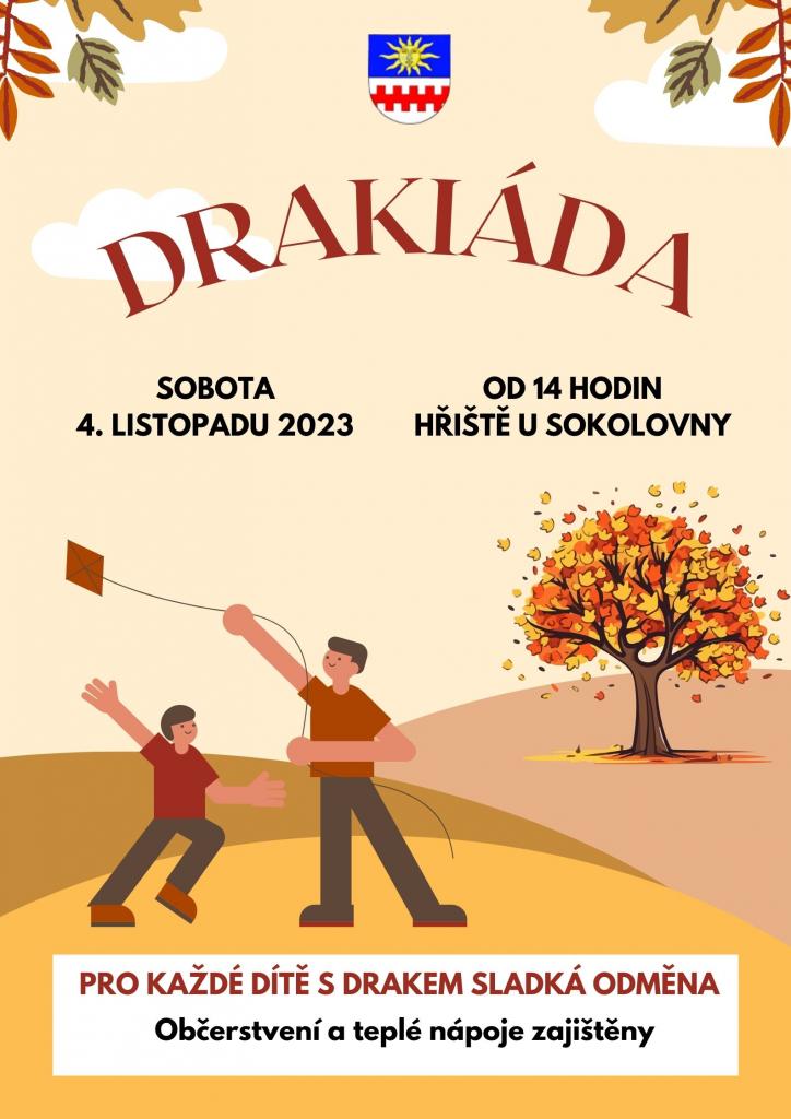 Malí, velcí i dospěláci, zveme vás všechny na tradiční drakiádu. Doražte v sobotu 4.11.2023 ve 14 hodin na fotbalové hřiště u sokolovny, kde společně draky vypustíme na oblohu. Občerstvení zajištěno. Těšíme na Vás!