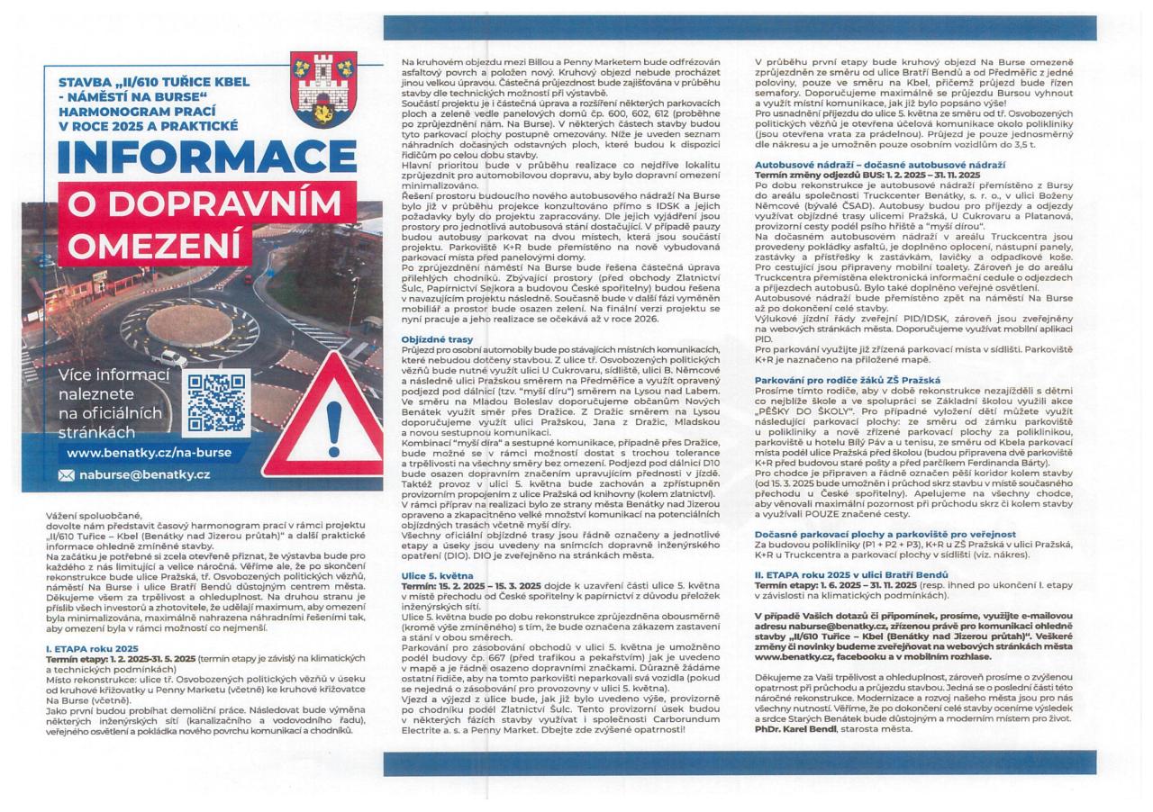 Informace o dopravním omezení v Benátkách nad Jizerou