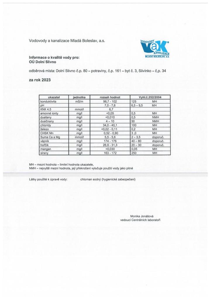 Společnost VaK zasílá informace o kvalitě vody za rok 2023