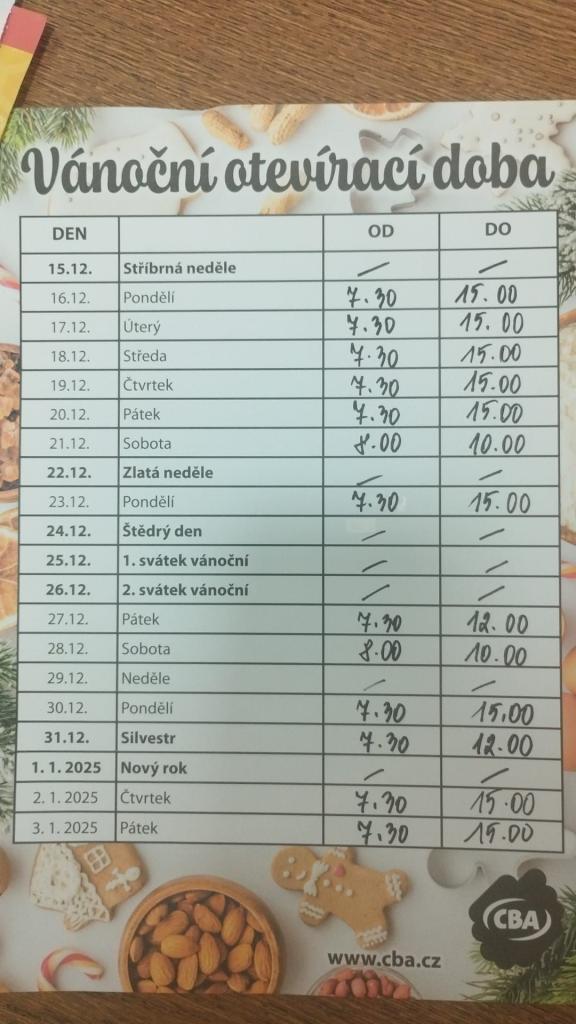 Vánoční otevírací doba obchodu s potravinami