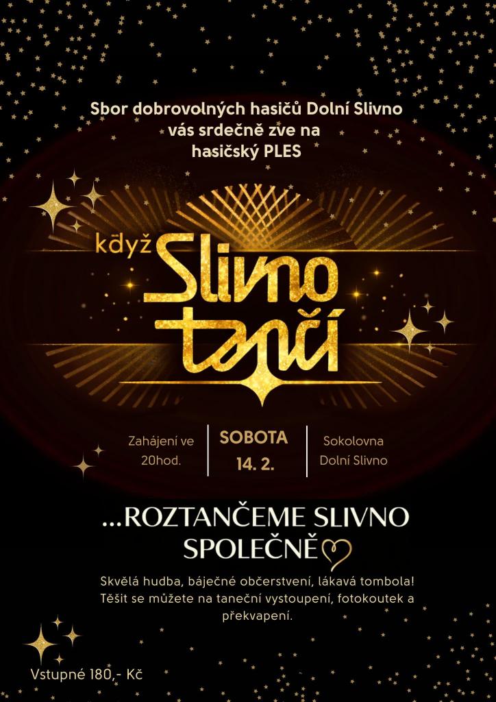 SDH Dolní Slivno srdečně zve občany na hasičský ples, který se bude konat v sobotu 14.2.2026 od 20:00 hod. na sále sokolovny v Dolním Slivně.