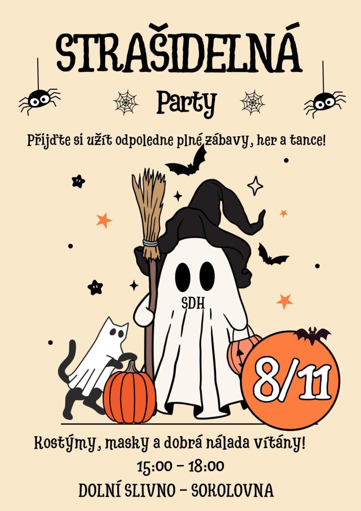SDH Dolní Slivno zve všechny děti dne 8.11. na Strašidelnou párty, která začně od 15 hodin na sokolovně. Na děti čeká spousta her, úkolů, tance a zábavy. Dobroty a odměny připraveny. Od 20 hodin poté zahájení taneční zábavy pro dospělé s názvem Disco Night. K tanci a poslechu zahraje DJ Tylchy.