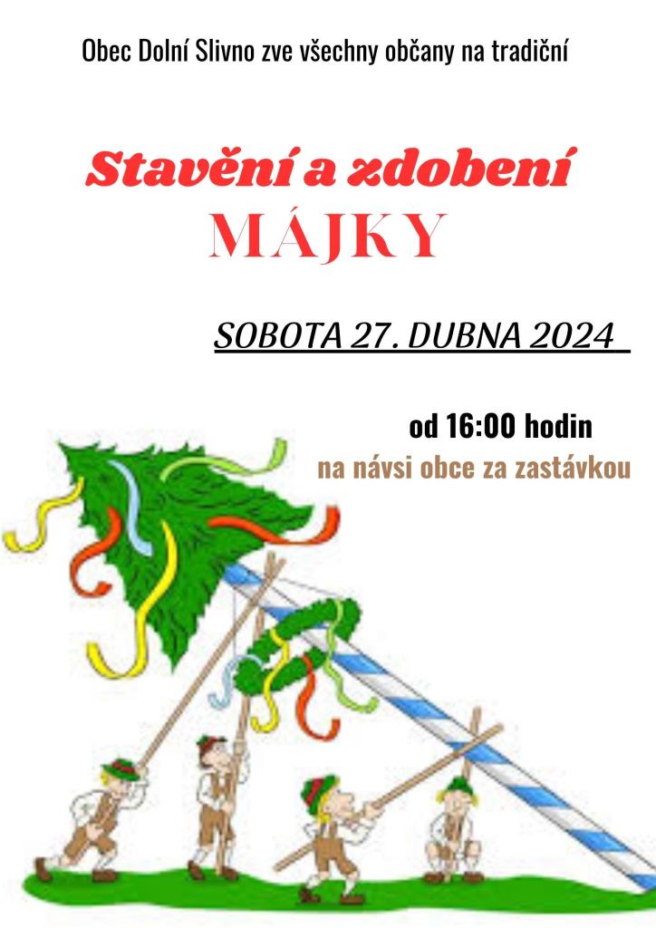 Zveme všechny občany, silné muže, mladé a svobodné dívky a ženy na tradiční stavbu a ozdobení Májky. Akce proběhne v sobotu 27.4. od 16 hodin na návsi obce za zastávkou. Těšíme se na Vás!