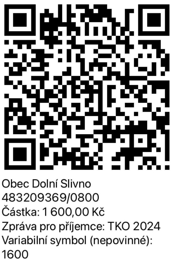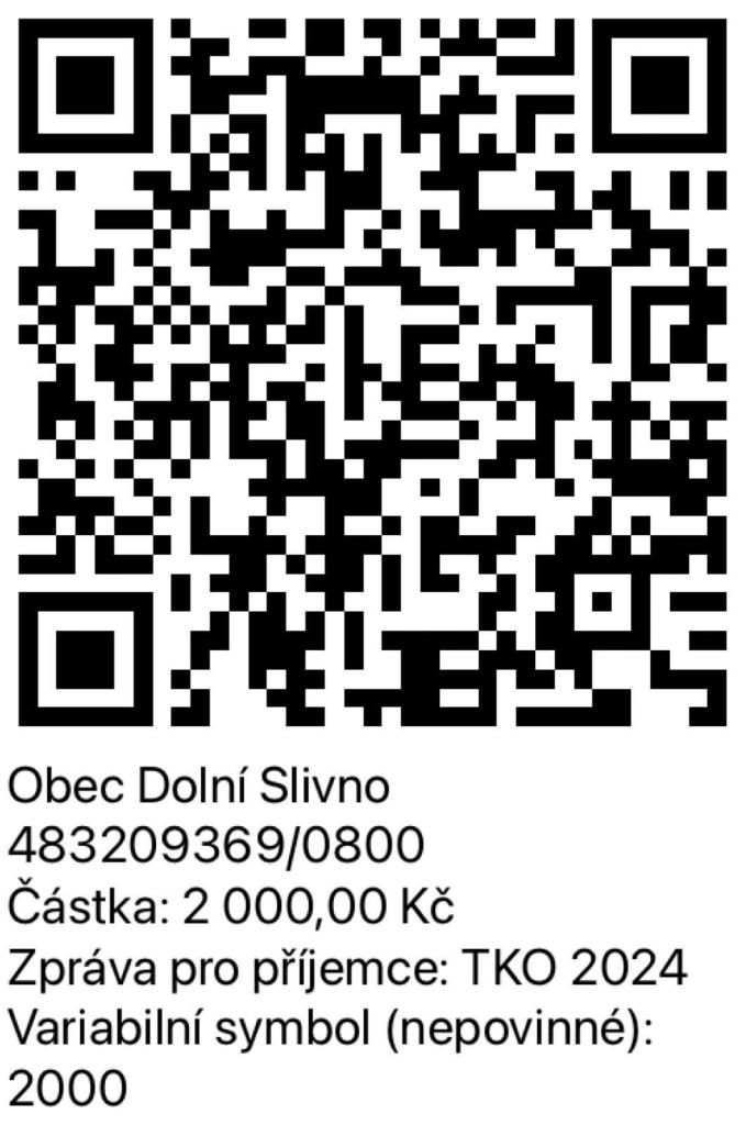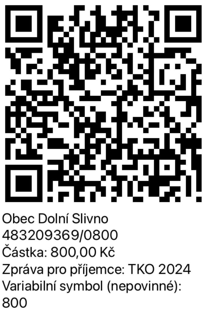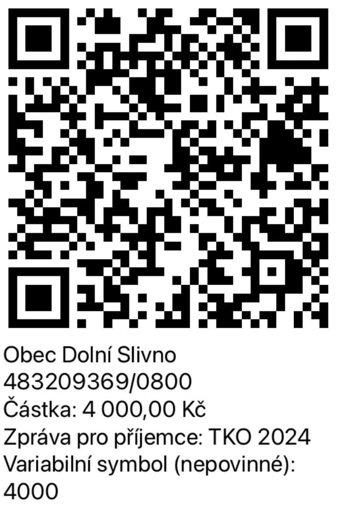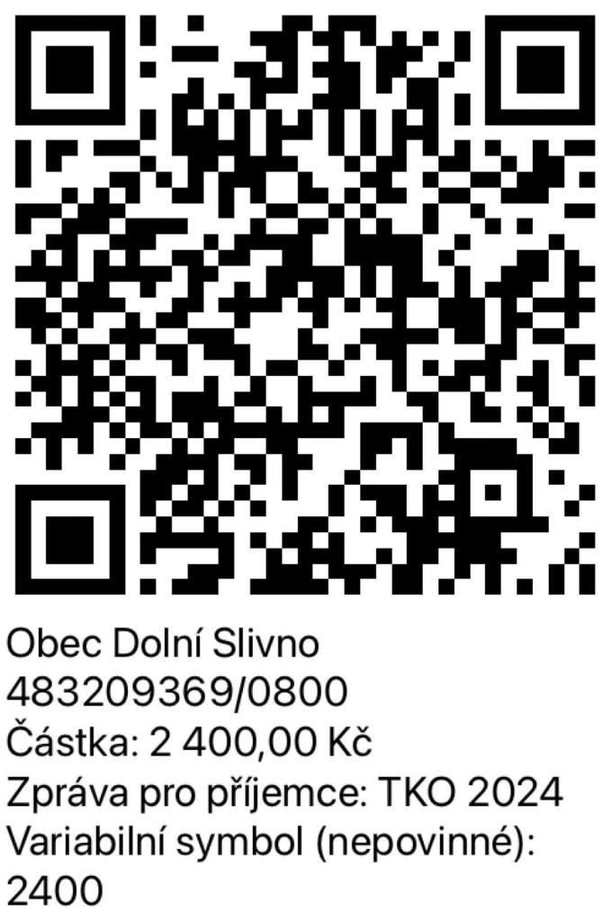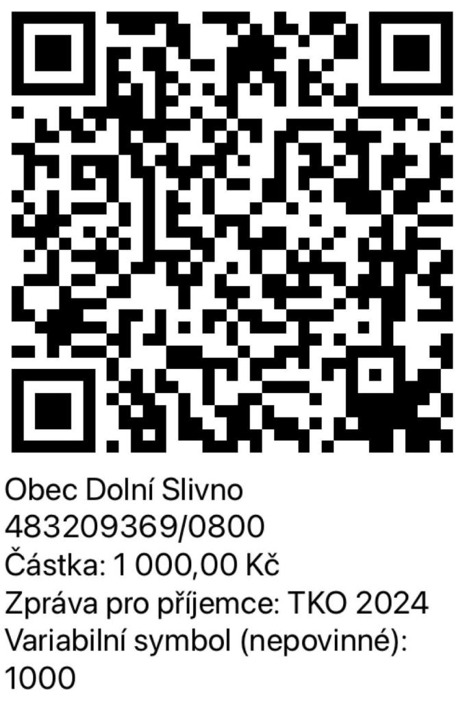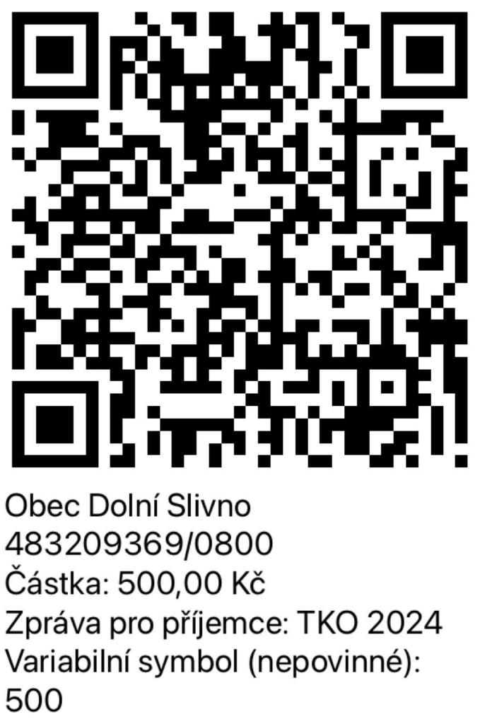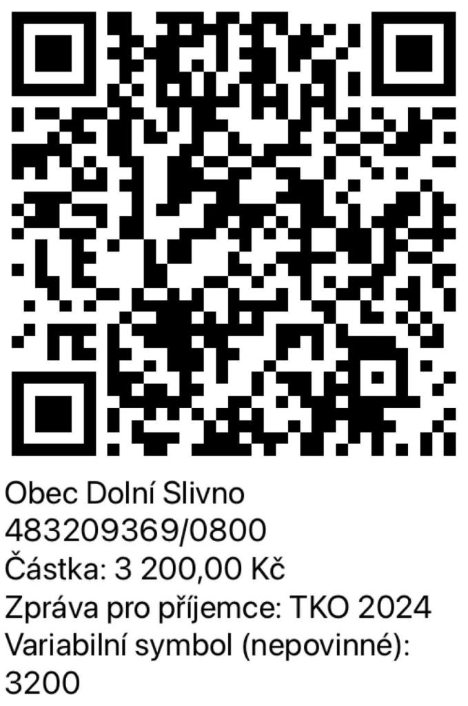 Vážení spoluobčané,poplatky za TKO je možné hradit i pomocí QR kódu.Poplatky na rok 2024 činí v případě svozu 1x týdně 800 Kč za fyzickou osobu přihlášenou k TP,v případě svozu 1x za 14 dnů 500 Kč za fyzickou osobu přihlášenou k TP.Za rekreační objekt je výše poplatku stejná, jako za fyzickou osobu.