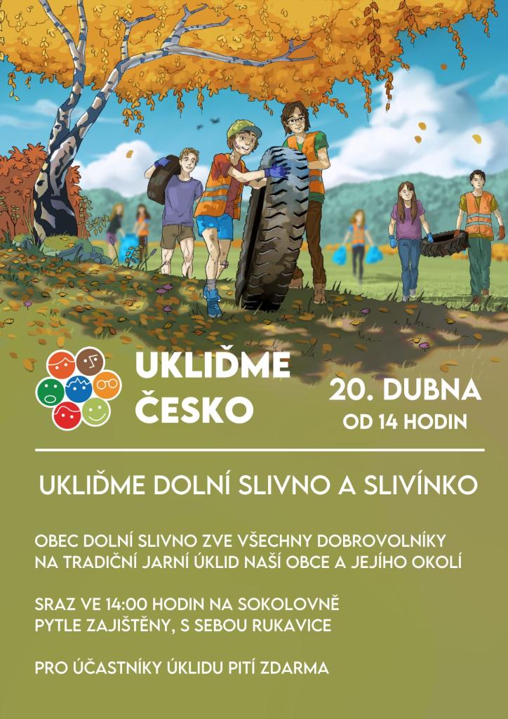 Každoroční jarní úklid naší obce a okolí proběhne dne 20. dubna od 14 hodin. Sraz všech dobrovolníků na sokolovně. Pytle zajištěny, s sebou jen rukavice. Pití pro účastníky zdarma. Děkujeme a těšíme se!