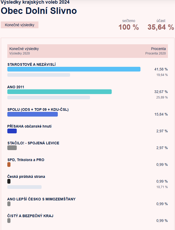 Výsledky krajských voleb 2024 - Dolní Slivno