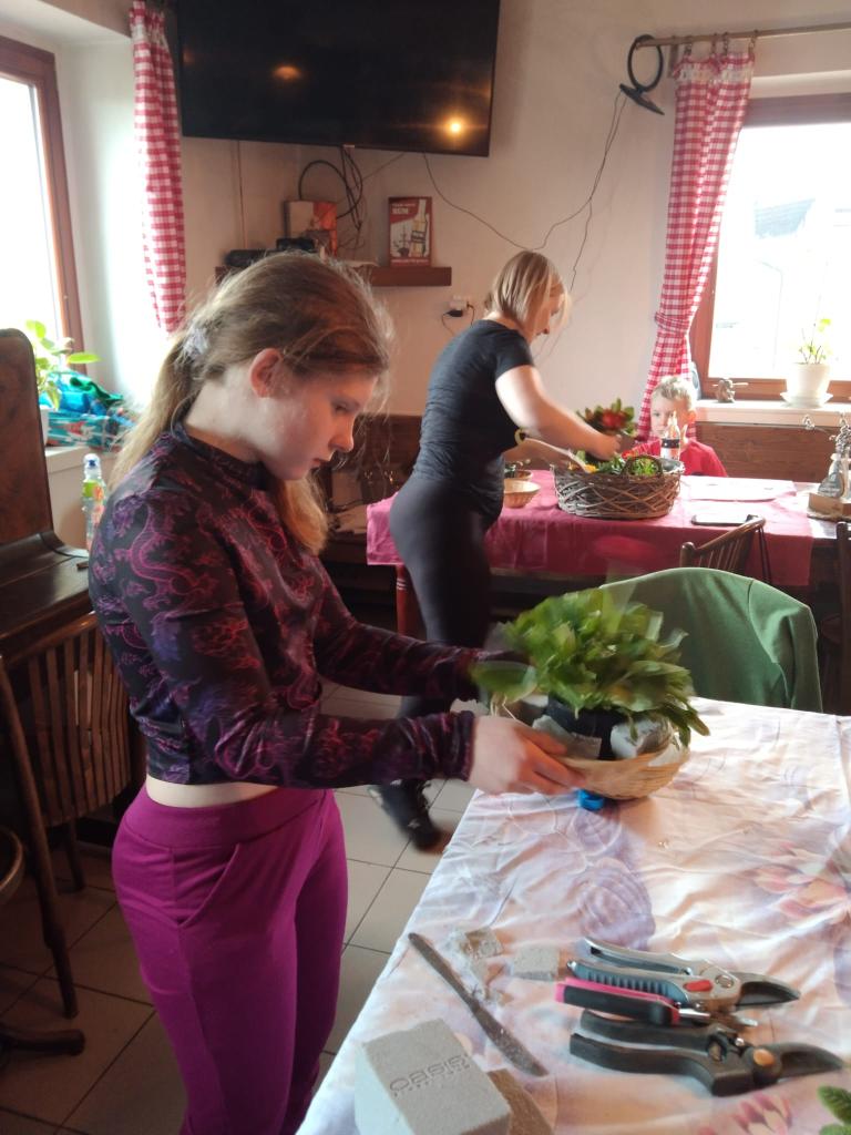Sobotní odpoledne jsme příjemně strávily v místní hospodě a za pomoci paní Bukvičkové jsme si vyrobily krásné jarní dekorace.